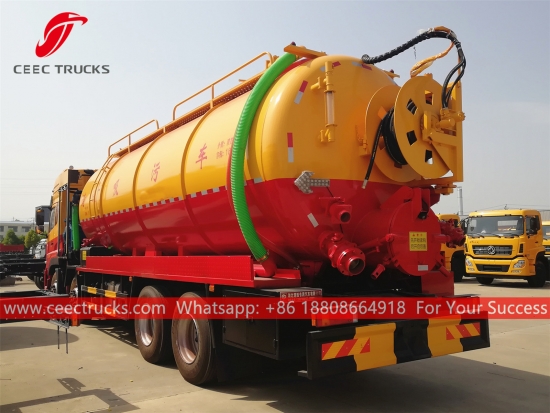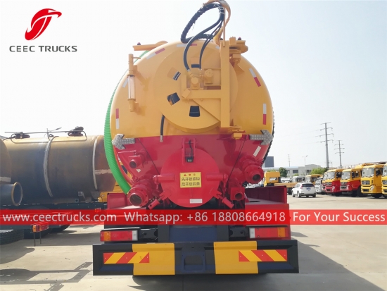 東風コンビネーション真空ジェットトラック (別名8*4複合ジェットバキュームトラック、真空複合下水道ジェットトラック、複合下水道清掃トラック、複合ジェット吸引トラック、ジェットと真空吸引トラック、真空とジェットトラック、複合真空ジェット洗浄トラック)は、高圧下で下水管内を移動する噴射ノズルで詰まりを解消し、強力な真空吸引によって下水管からすべての水と泥を吸い取って下水管を清掃するように設計された車両です。このトラックは環境保護のために広く使用されています。