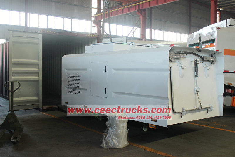 10 cbm 道路清掃トラック上部ボディキット(ストリート スイーパー トラック上部構造、清掃車両上部ボディ キット、ストリート清掃車両上部ボディ、道路清掃トラック上部ボディ、ストリート清掃車両上部構造、ほうき清掃トラック上部ボディ キットとも呼ばれます) これは、真空タイプのトラック搭載型道路清掃機の一種で、道路の清掃やゴミの収集、ゴミ収集場所への運搬に特化しています。