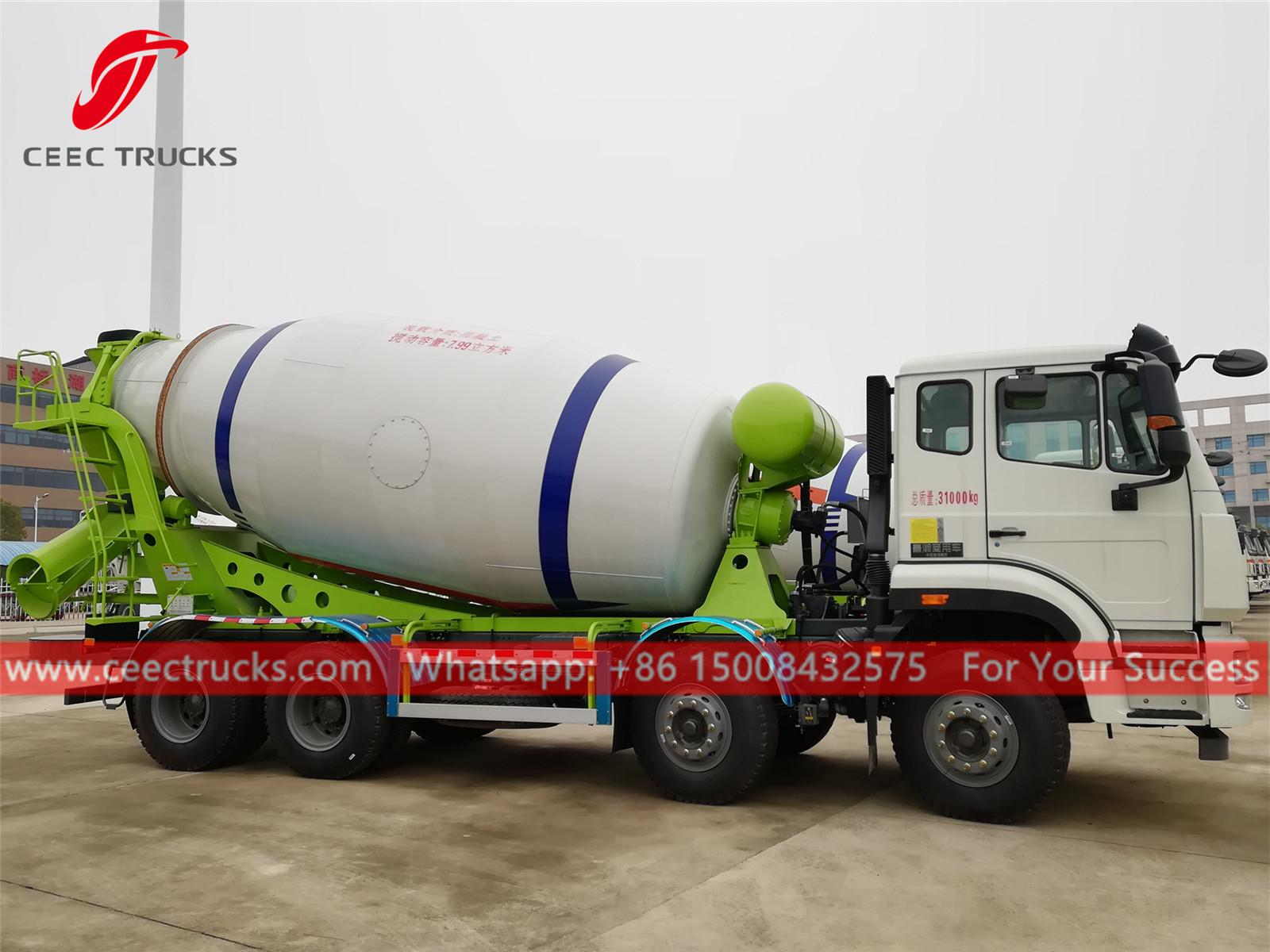 SINOTRUK 10cbm コンクリートミキサートラック、8x4 LHD シャーシ、weicha 340HP ディーゼルエンジン、HW13710L 10 シフトマニュアルギアボックス、主要部品のモーター、ポンプ、減速機は、Eaton、PMP、Rexroth、Bonfiglioli などのブランドをオプションで選択でき、塗装とロゴはリクエストに応じて異なります。