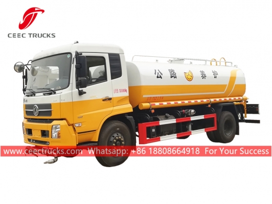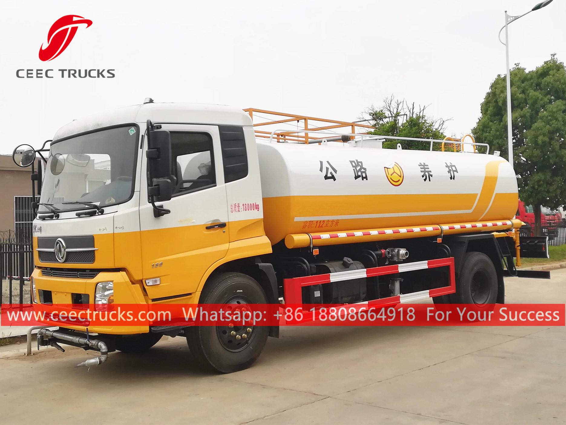 DONGFENG 11,000L 散水トラック、DONGFENG 4x2 左ハンドルシャーシ、6速マニュアルギアボックス、CUMMINS 180馬力ディーゼルエンジン、有名ブランドのウォーターポンプ、オプションでフロント、ミドル、リア散水ノズルを装備。塗装とロゴはご要望に応じて変更いたします。