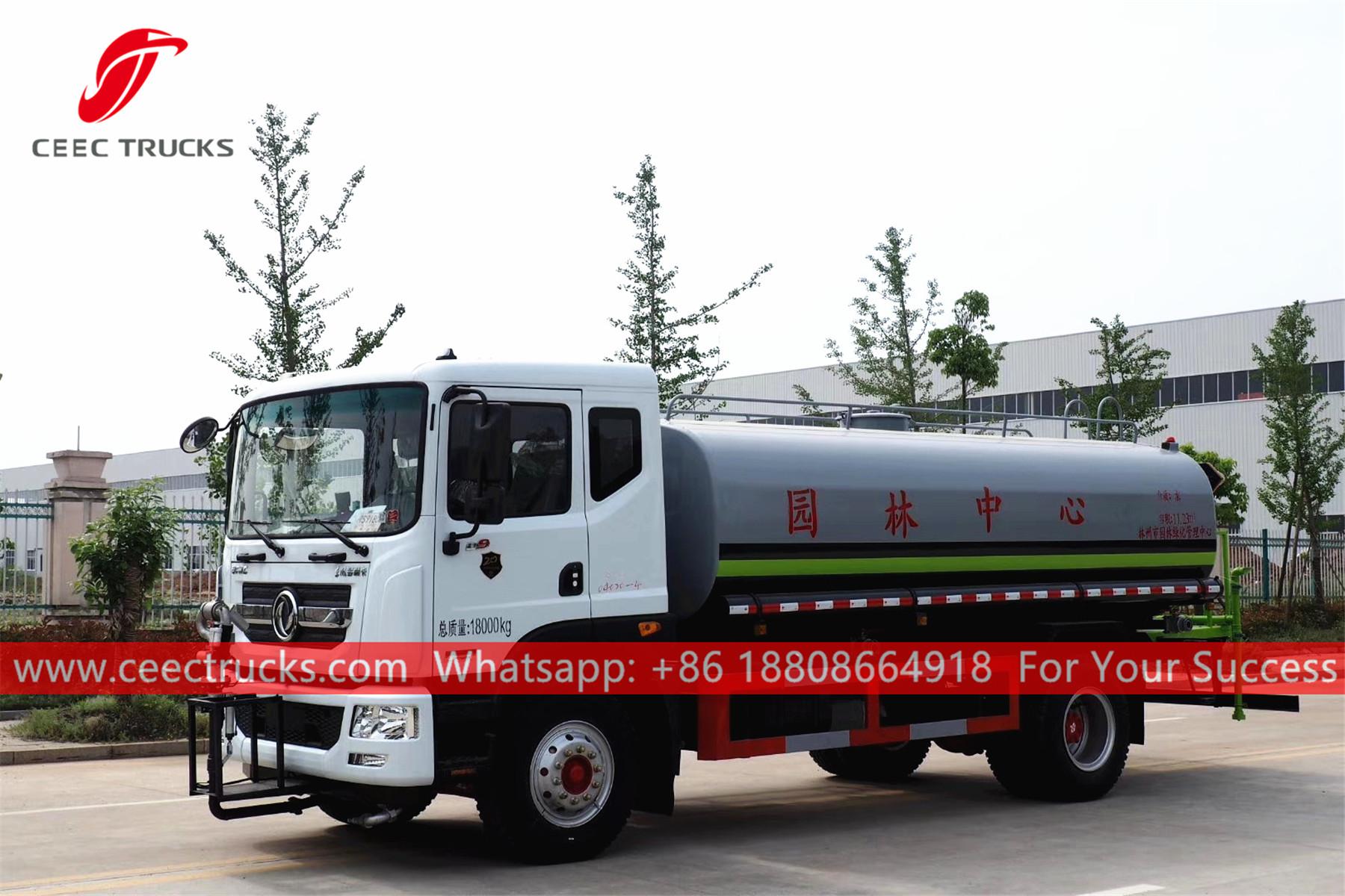 DONGFENG 11,000L 散水トラック、DONGFENG 4x2 左ハンドルシャーシ、6速マニュアルギアボックス、CUMMINS 180馬力ディーゼルエンジン、有名ブランドのウォーターポンプ、オプションでフロント、ミドル、リア散水ノズルを装備。塗装とロゴはご要望に応じて変更いたします。
