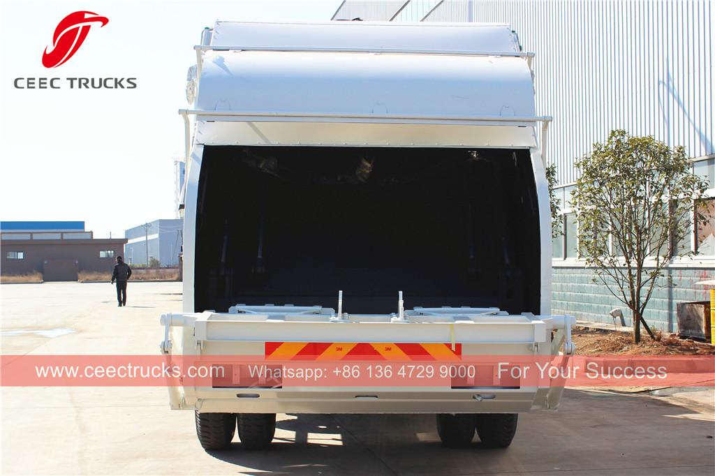 高性能12cbm油圧式ゴミ圧縮トラック、東風シャーシ、国際品質のCUMMINS 190HPディーゼルエンジン、6段マニュアルトランスミッションギア。操作しやすいPLCコントロールボックス、塗装とロゴはすべてオプション。
