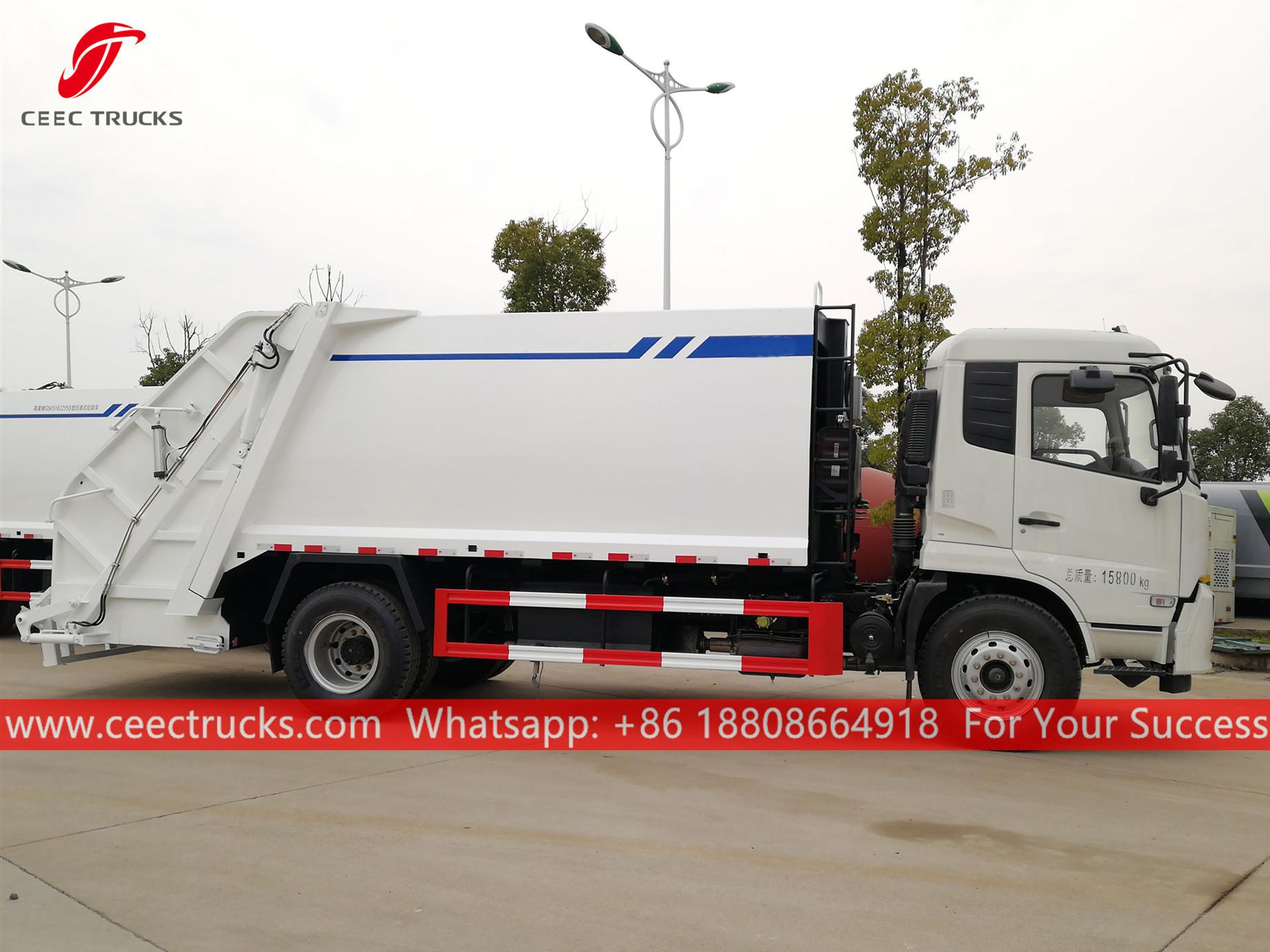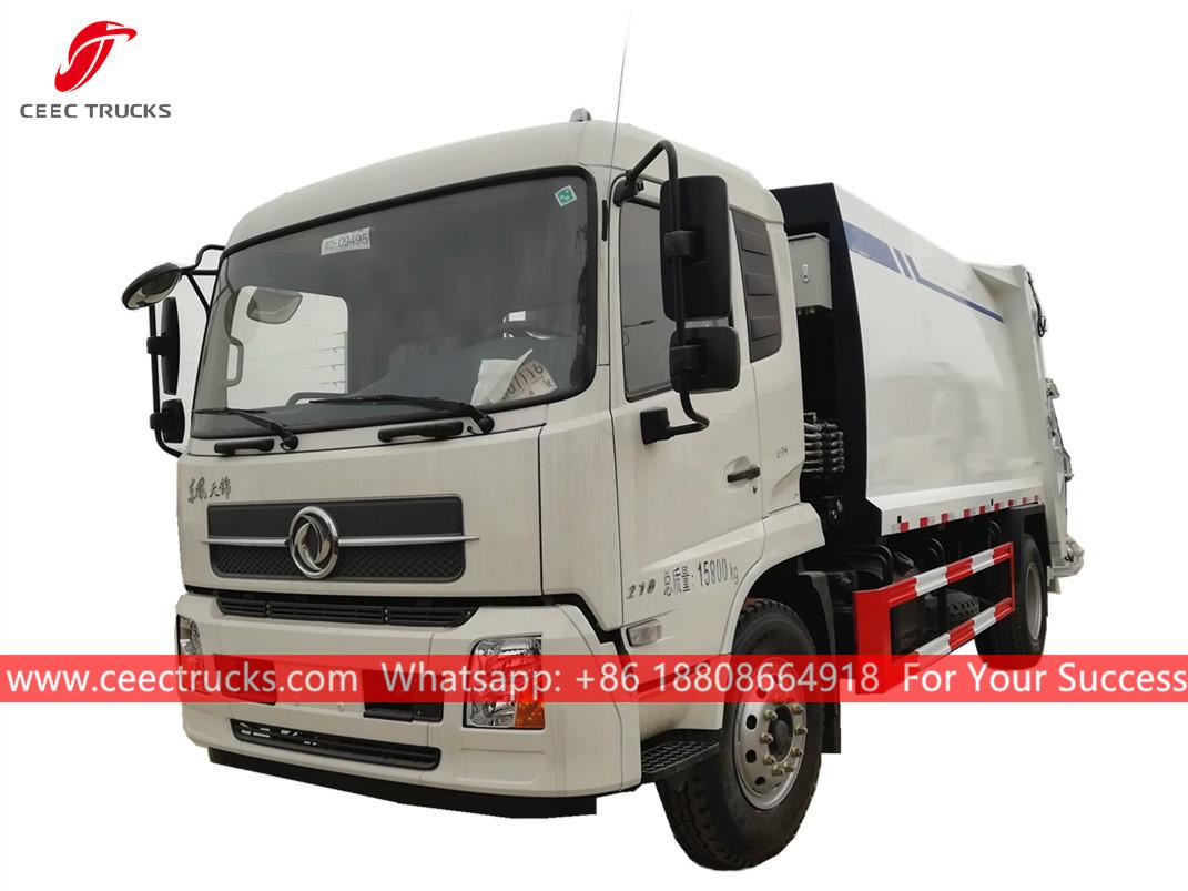 東風ブランドの12cbmゴミ圧縮車。シャーシにはCUMMINS製210馬力ディーゼルエンジンを搭載し、6速マニュアルトランスミッションギアを採用。シーメンス技術のPLC制御ボックスで操作も簡単。塗装とロゴはすべてお客様のご要望に合わせて製作いたします。