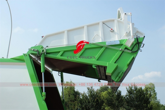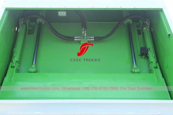 廃棄物圧縮機の上部構造 (別名 ゴミ圧縮キット、リアローダー圧縮装置、廃棄物圧縮機上部本体) ゴミ圧縮車は、ゴミ収集車用の機械の一種です。ゴミ圧縮車は、通常のゴミ収集車と同様の運搬・荷降ろし機能に加え、特殊な圧縮装置によってゴミを圧縮する点が特徴です。。