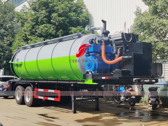 真空下水道セミトレーラー (またと呼ばれる汚水タンカートレーラー、真空タンクトレーラー、下水吸引セミトレーラー、浄化槽セミトレーラー、トレーラー搭載型真空システム、中国真空タンクローリーメーカー)は汚水、ヘドロ、浄化槽、原油などの液体、および小石やレンガなどの固形物の収集、輸送、排出に使用されます。下水道、汚水溜め、汚水溜め、溝などの清掃に適しています。環境衛生分野で広く使用されています。