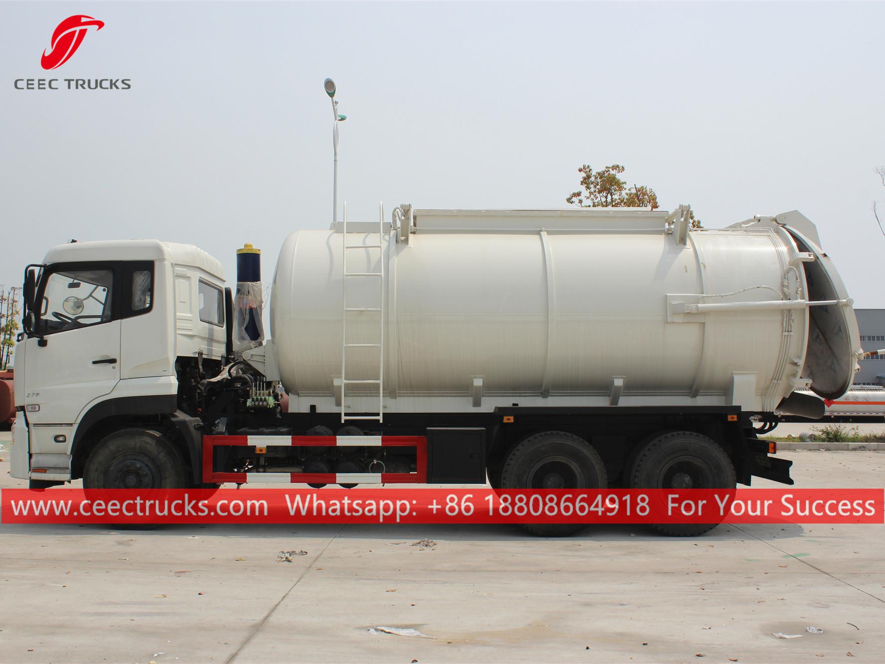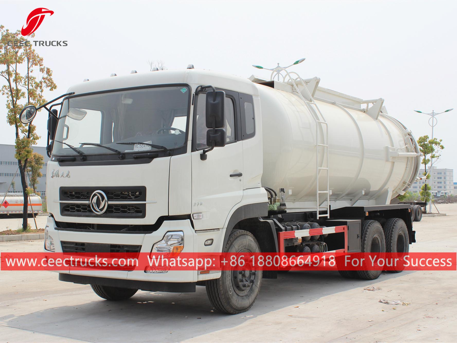 Dongfeng 20cbm 真空トラック、左ハンドルモデル 6x4 シャーシ、FAST 9 シフトマニュアルギアボックス、CUMMINS 270HP ディーゼルエンジン、塗装およびロゴは要件に応じて異なります。