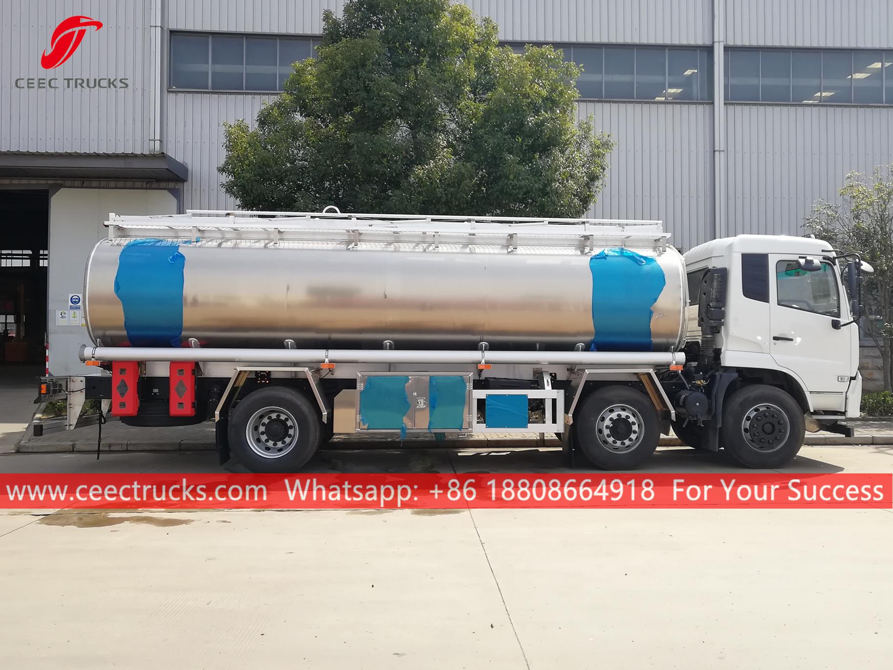 21,000Lのオイルタンカートラック、DONGFENG製6x2シャーシ、FAST製8段マニュアルギアボックス、CUMMINS製210馬力ディーゼルエンジン、標準装備の燃料タンク、有名ブランドのオイルポンプ。塗装とロゴはご要望に応じて変更いたします。