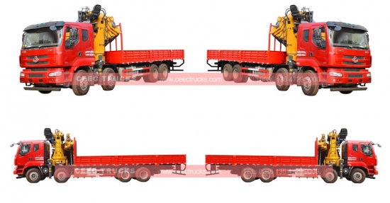 東風12輪25トンナックルクレーントラック、カミンズ製ディーゼルエンジン260馬力、EURO3/4排出ガス規制適合(オプション)、マニュアル9段変速ギアボックス標準装備、左ハンドルと右ハンドル(オプション)。リモコン付き(お客様選択)