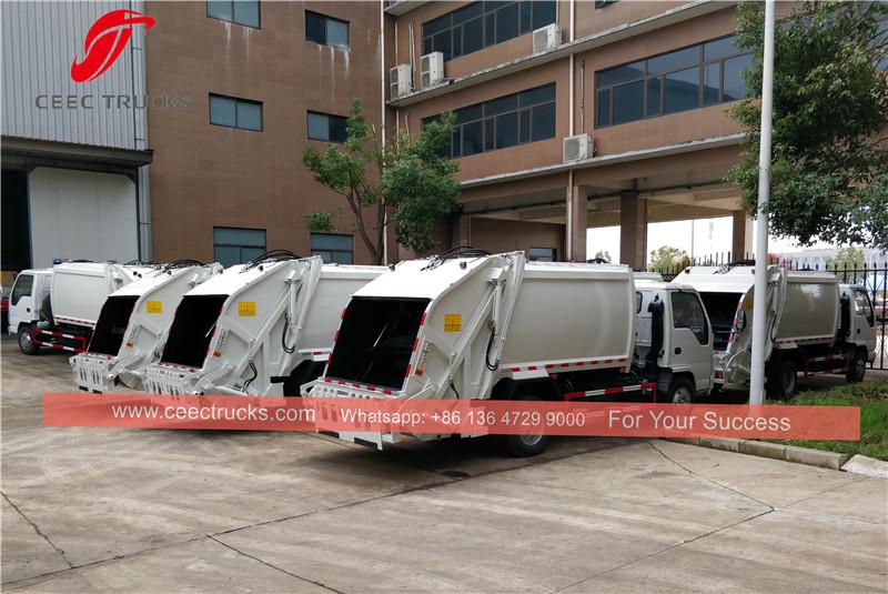 5CBM積載可能なISUZUゴミ圧縮車。