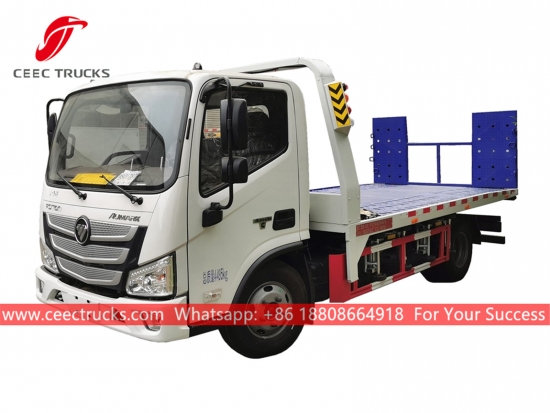 Foton 3トン道路レッカートラック、4x2シャーシ、手動5シフトマニュアルギアボックス、CUMMINS 130HPディーゼルエンジン、油圧シリンダー作動の長いプラットフォーム、塗装およびロゴは要件によって異なります。