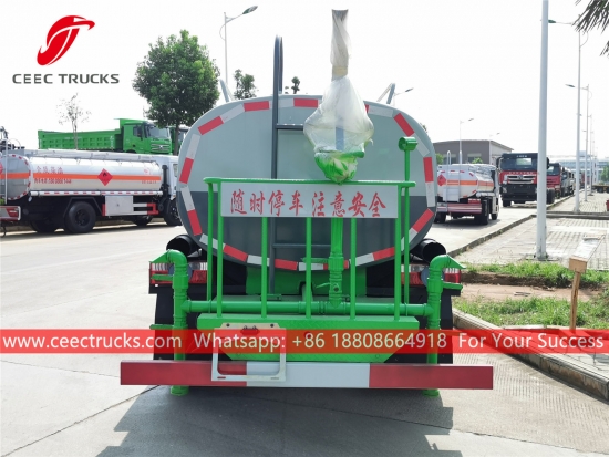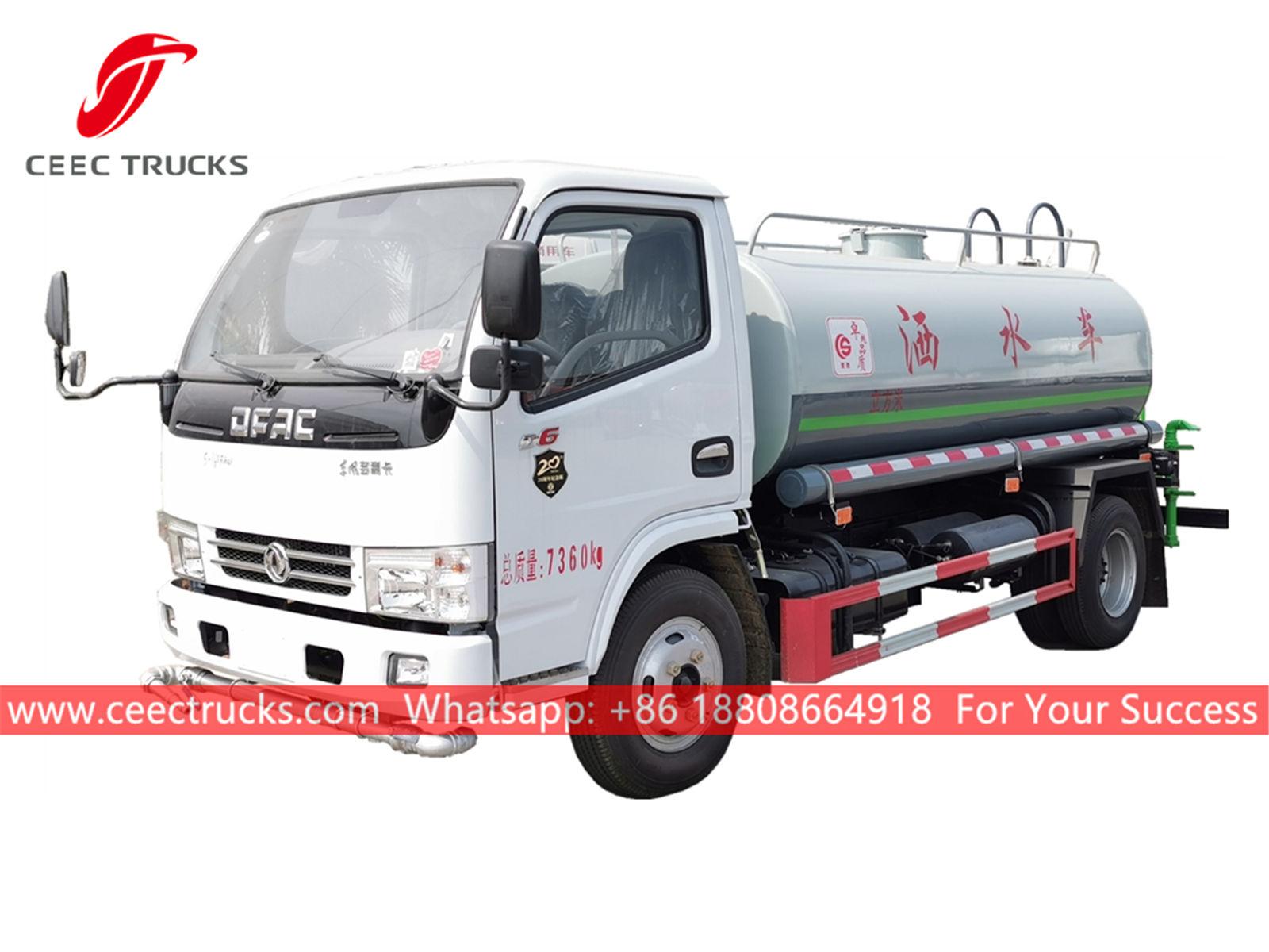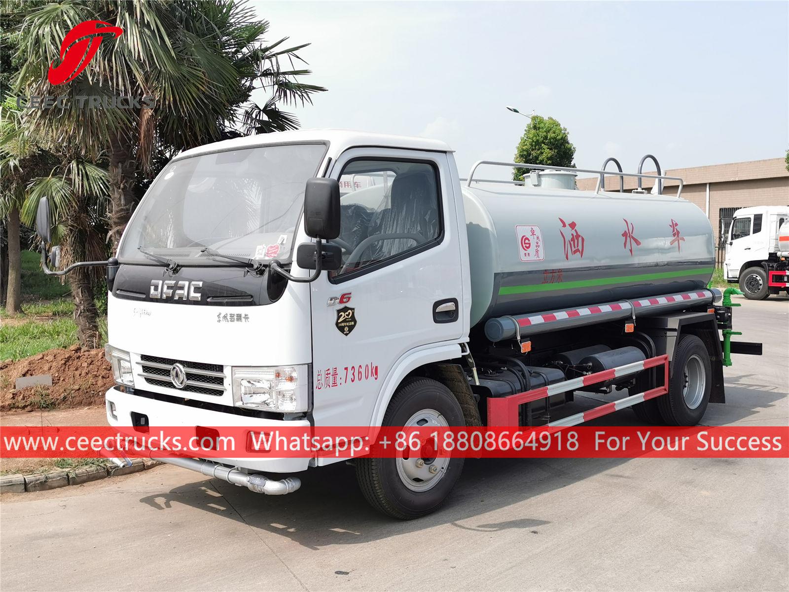 DONGFENG製4,000L給水車、DONGFENG製4x2左ハンドルシャーシ、5速マニュアルギアボックス、YUCHAI製115馬力ディーゼルエンジン、有名ブランドのウォーターポンプ、オプションでフロント、ミドル、リア散水ノズルを装備。塗装とロゴはご要望に応じて変更いたします。