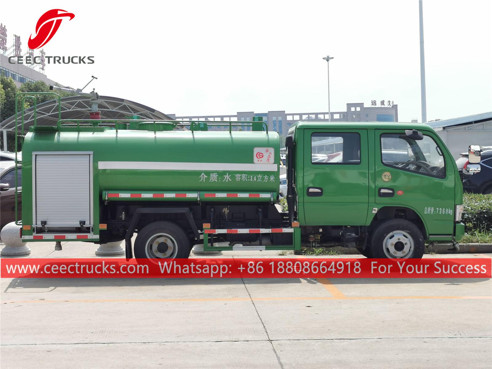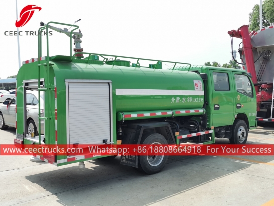DONGFENG 4,000L散水トラック、DONGFENG 4x2左ハンドルシャーシ、5段マニュアルギアボックス、CHAOCHAI 102馬力ディーゼルエンジン、有名ブランドのウォーターポンプ、オプションでフロント、ミドル、リア散水ノズルを装備。塗装とロゴはご要望に応じて変更いたします。