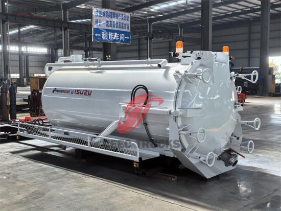 5,000 liters vacuum pump tanker body汚水吸引車は、特殊衛生車両として、主に都市下水道、浄化槽、下水井戸、下水処理場、工場における汚泥、汚泥、液体の清掃・輸送に使用されます。この車両は、先進的な機械技術と環境保護のコンセプトを融合し、都市衛生管理レベルを効果的に向上させ、環境汚染を軽減します。