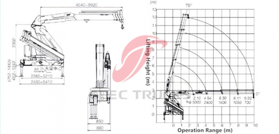 5トンナックルブームクレーン車 BEIBEN(5000kgブームクレーン) |