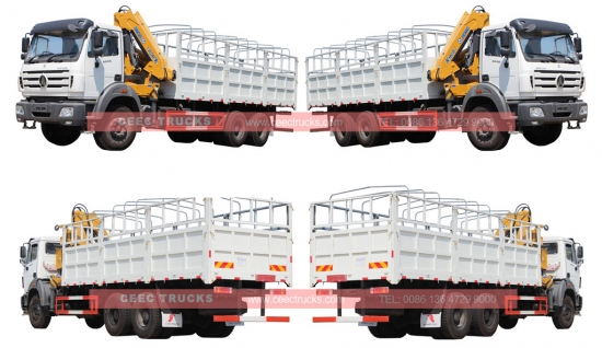 Beiben 5トンナックルブームクレーントラックを販売いたします。WEICHAI製スーパーディーゼルエンジン380馬力、FAST9段ギアボックスを標準装備。左ハンドルと右ハンドルはオプションです。5トンナックルブームクレーンと専用設計の貨物ボックスを搭載し、最大吊り上げ重量は5000kgです。リモコン付きで、お客様のニーズに合わせてお選びいただけます。