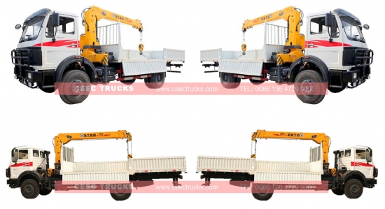 Beibenブランドの5T伸縮式ブームクレーントラックを販売しています。WEICHAIブランドのディーゼルエンジンWP10.300(300馬力)を搭載し、人気の高い高速マニュアル9段変速ギアボックスを搭載しています。前進9速、後進1速、左ハンドルと右ハンドルのオプションをご用意しています。5T伸縮式ブームクレーンを搭載し、リモコンも選択可能です。