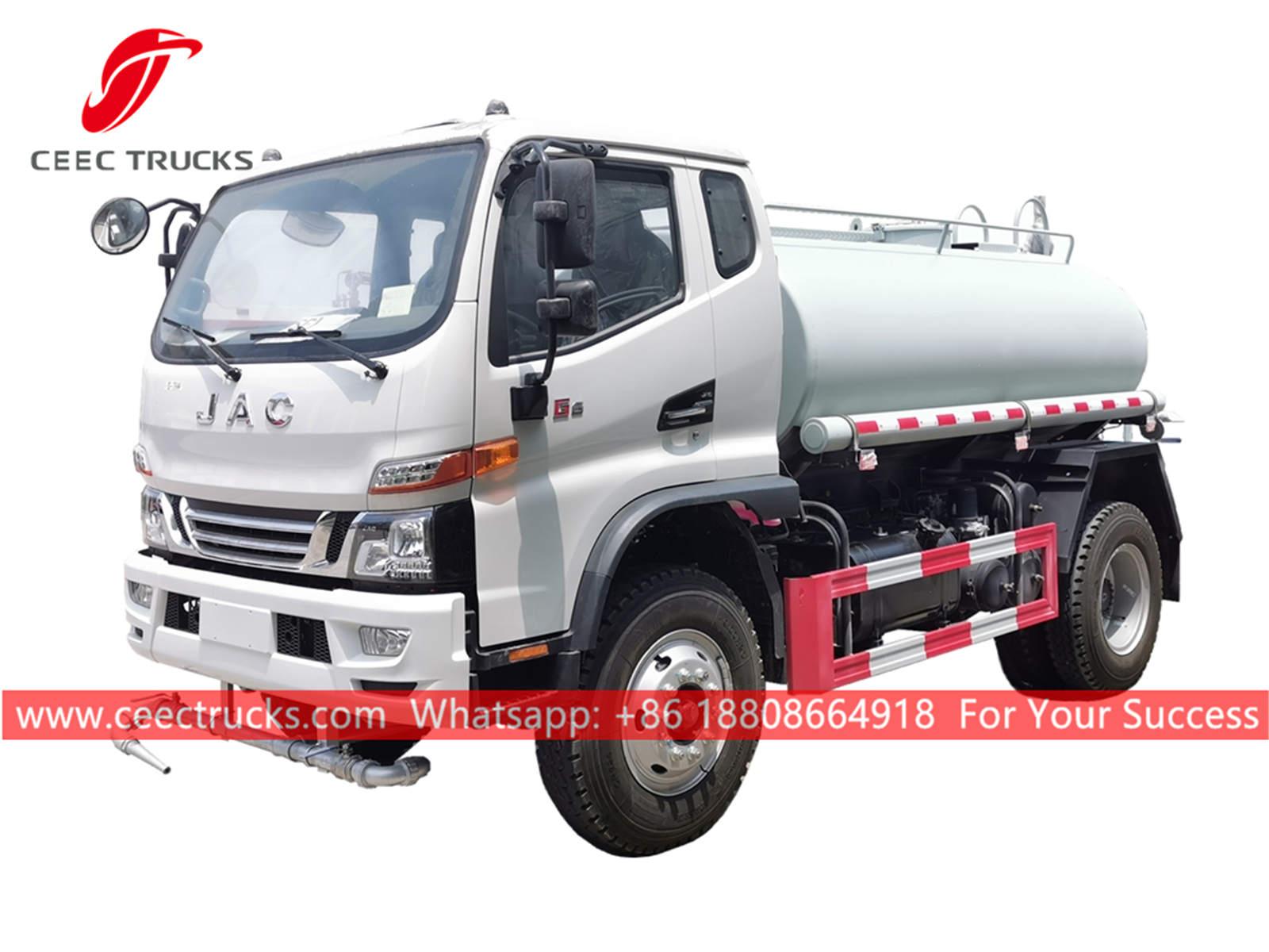 ミャンマー5,000L給水車、JAC製4x2左ハンドルシャーシ、5段マニュアルギアボックス、YUNNEI製116馬力ディーゼルエンジン、有名ブランドのウォーターポンプ、オプションでフロント、ミドル、リアの散水ノズルもご用意しております。塗装とロゴはご要望に応じて変更いたします。