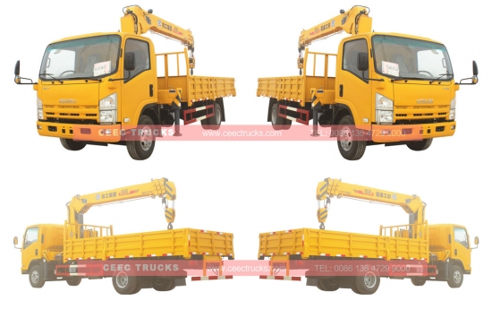 2018年最高のISUZU 6.3T伸縮式クレーントラック、ISUZUテクノロジーディーゼルエンジン190HP、操作が簡単な手動MLD 6シフトギアボックス、6300kg伸縮式ブームクレーンを装備、選択用のリモコンもあり、貨物ボックスの長さは3000mmから4500mmの範囲です。