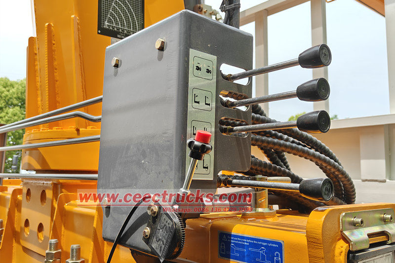 ● 伸縮アーム操作: 4段ブームは油圧シリンダーによって段階的に伸縮し、伸長半径は16メートルに達します。ブームの先端には滑車ブロックとワイヤーロープが装備されており、重量物を持ち上げることができます。