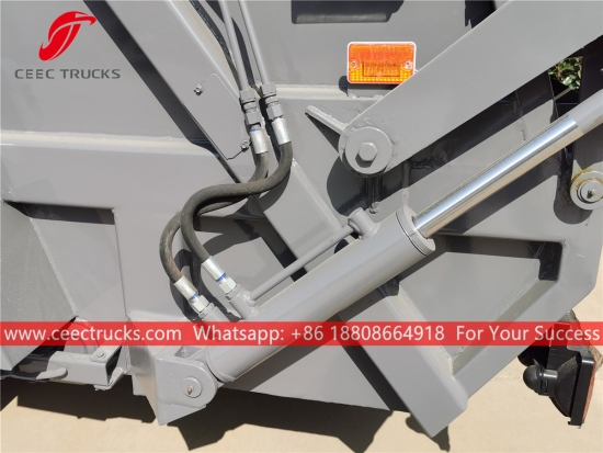 ゴミ圧縮機本体 (別名 バックローディング式圧縮機本体、圧縮式ゴミ収集車上部構造、廃棄物圧縮機本体キット) 圧縮式ゴミ収集車は、通常のゴミ収集車と同様の運搬・荷降ろし機能に加え、特殊な圧縮装置でゴミを圧縮する点が特徴です。。
