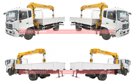東風伸縮式8トンブームクレーントラックを販売中。左ハンドルと右ハンドルのオプションあり。カミンズ製ディーゼルエンジン170馬力/190馬力、6段マニュアルギアボックス搭載。好評販売中。8トン伸縮式ブームクレーン搭載。荷台は最大5500mmまで対応可能。リモコン操作も選択可能。