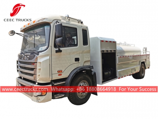 JAC製8,000L高圧給水車、JAC製4x2シャーシ、5段マニュアルギアボックス、YUCHAI製190馬力ディーゼルエンジン、有名ブランドのウォーターポンプ、高圧ホース、ノズル。塗装とロゴはご要望に応じて変更いたします。