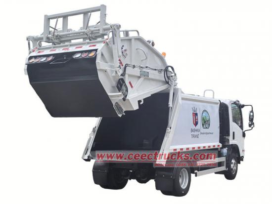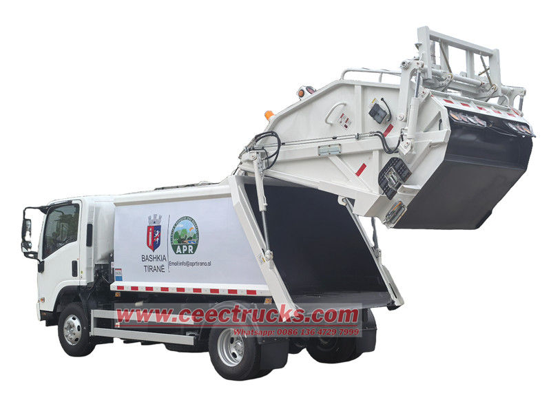 Isuzu NPRリアローダーは、都市家庭廃棄物の収集、圧縮、輸送に主に使用される、高効率で多機能な衛生車両です。3360mmのホイールベース、Isuzu 4KH1CN6LB 120hpエンジン、Euro 6ディーゼル2.999L排出量、Isuzu MSB 5段ギアボックス、合計7個の700R16タイヤ、エアコン、USB、方向指示器、3座席を備えています。上部は10cbmのゴミ箱、後部はバケットフリップ機構で、トラックの積み下ろしには3つの操作方法があります。