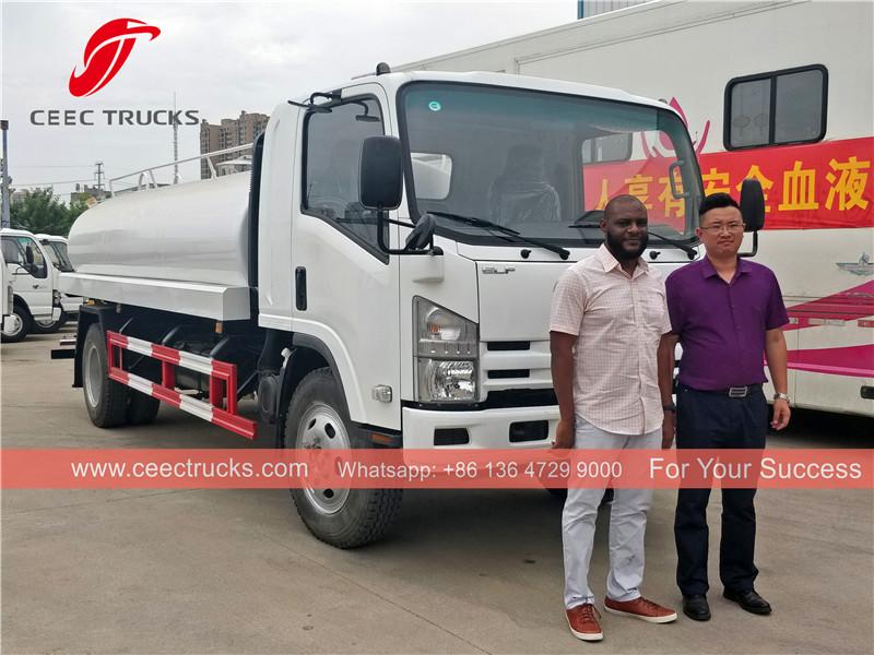 お客様は当社工場で Isuzu 給水車を検査し、運転後にその車に非常に満足しました。