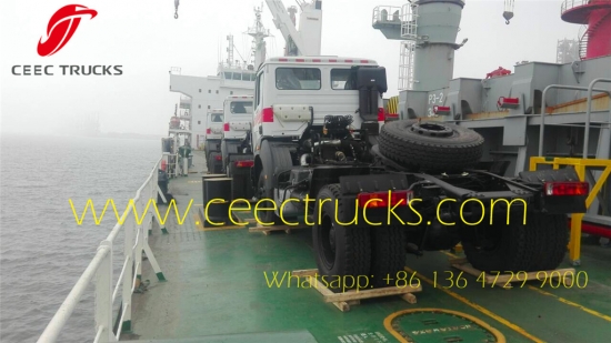 (合計6台のBeiben 4*2トラクターヘッドベンツ1829カミオントラクターが上海港に到着しました)