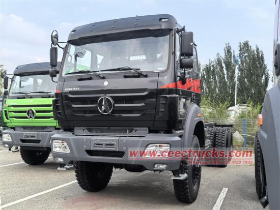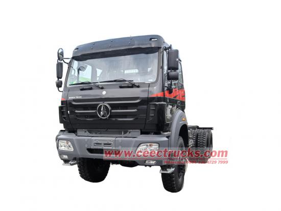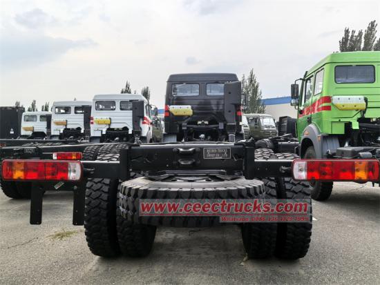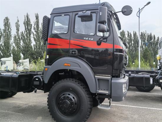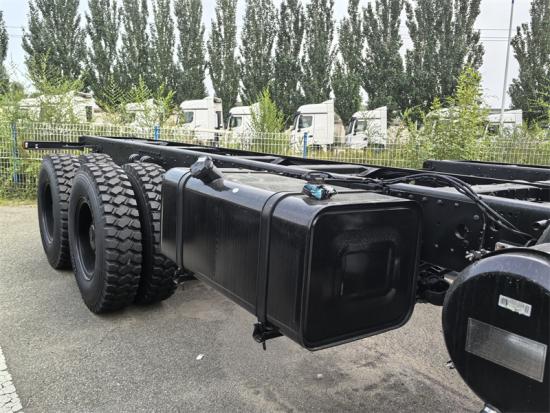 Beiben 6x6全輪駆動シャーシは、Beiben NG80 2638APモデルキャブを使用し、全輪駆動で、ホイールベースは4450+1450mm、Weichai WP10.380E32エンジン、Fast 9速ギアボックス、7トンの前車軸、18トンの後部デュアル車軸、12.00R20タイヤを備え、最高速度は90km/hです。