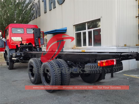 コンゴ Beiben 6*6 ドライブ貨物トラック シャーシ、軍事品質保証、有名ブランドの Weichai 420 hp ディーゼル エンジン、12JS200T 極めて信頼性の高いトランスミッション、4450+1450 mm ホイール ベース、頑丈な強化 4 U ボルト サスペンション システム、メルセデス ベンツ テクノロジーのフロント アクスルとリア アクスル、ベンツ テクノロジーの NG80B キャビン。