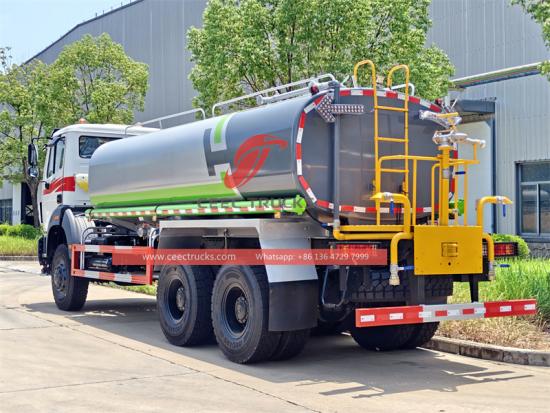 それで 水タンカーは Beiben 6x6全輪駆動シャーシは、すべての車輪が駆動力を提供することで、低グリップ路面(泥、雪、砂、氷)での牽引力と登坂力を大幅に向上させ、スリップや沈下を防止します。Beibenオフロードシャーシは通常、高い地上高を提供し、悪路(大きな岩、深い轍、倒木など)上の障害物を容易に移動できるため、底付きのリスクが軽減され、シャーシと下部タンクが保護されます。マルチリーフスプリングまたはハイドロニューマチックサスペンションがよく使用され、積載量が増加し、耐衝撃性に優れているため、未舗装路の激しい衝撃に耐え、車両構造とタンク機器を保護します。大きなアプローチ/デパーチャーアングルは、急な坂道やこぶのある道路をより簡単に上り下りできるように設計されており、フロントとリアのバンパーの衝突を回避します。