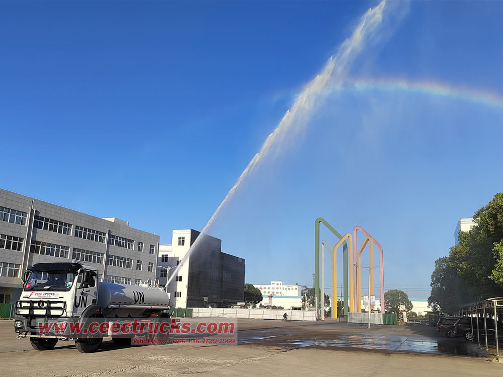 3.消防支援および救急活動:北奔オフロード放水車は、射程距離60~100メートルの高圧放水砲を搭載しており、消火・冷却、緊急消火活動に使用できるほか、消毒剤を併用して防疫・消毒を行い、公共の緊急事態にも対応できます。