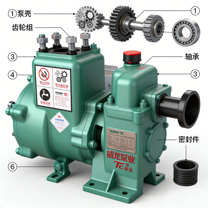 The water pump features a speed-increasing gearbox design, consisting of a pump body, impeller, mechanical seal, and other components. It eliminates the need for a foot valve in the suction line, resulting in a compact structure and convenient operation and maintenance.