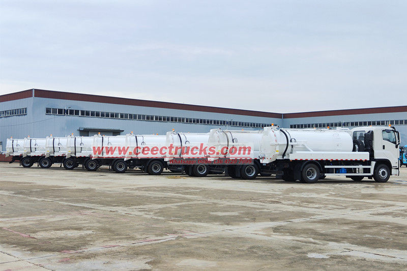 作業中、トラックは浄化槽、下水道、またはパイプの詰まり箇所に停車します。真空ポンプは吸引ホースを介して廃棄物容器に接続されます。作動すると、タンク内に急速に高真空状態を作り出し、圧力差を利用して排泄物、下水、汚泥などの液体または半固体の廃棄物をタンクに強制的に吸引します。