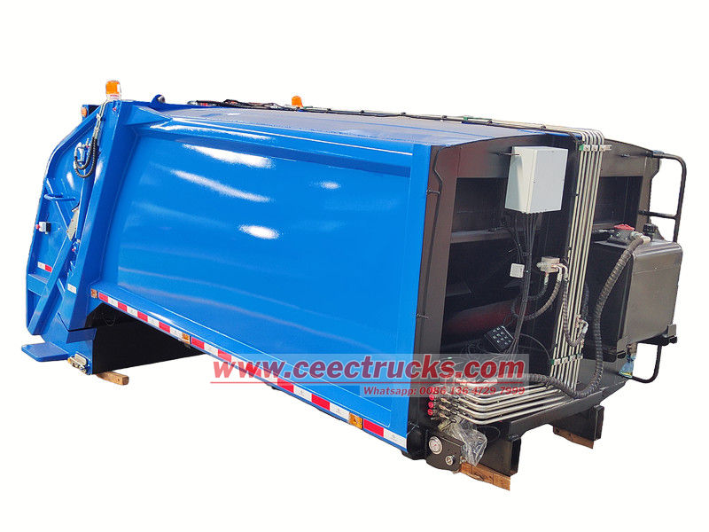 Volume optional 5-20cbmカスタマイズされた10CBMリアローダーのゴミ収集ボディは、効率的な収集、強力な圧縮、そして密閉輸送を両立しています。高強度・耐摩耗鋼製の密閉コンパートメントには、油圧駆動のローダーとプッシャー機構が備わっており、廃棄物の自動破砕と高密度圧縮を実現します。