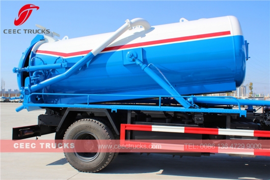 Dongfeng 10000L 汚水溜め排出装置、CUMMINS 170HP ディーゼルエンジン、6 シフトマニュアルギアボックス、最大 10 cbm の高強度鋼材タンカー、WEILONG 真空ポンプ、廃棄物排出用油圧リフト装置、塗装およびロゴはリクエストに応じて異なります。