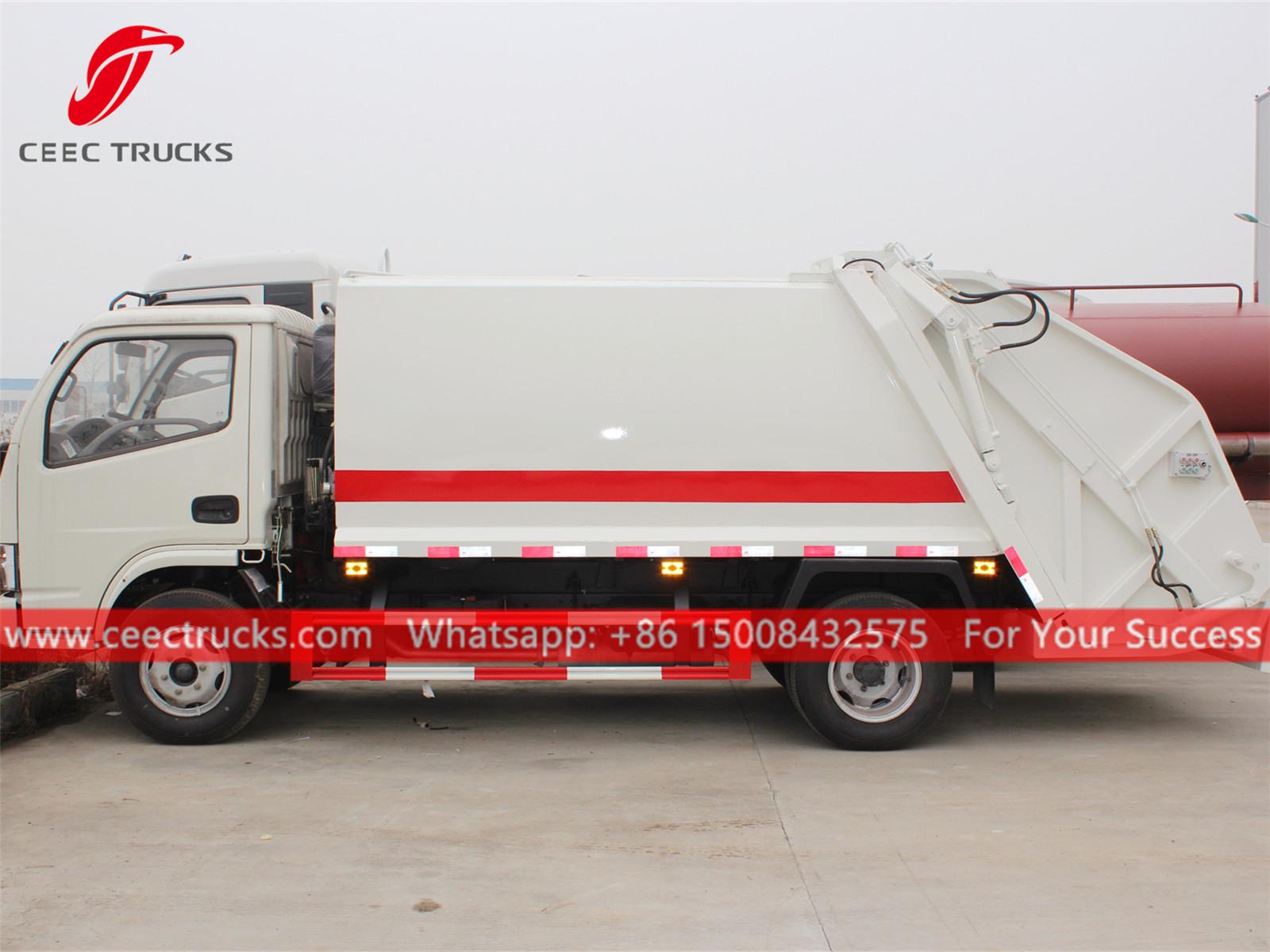 DONGFENG 4000リットルゴミ圧縮車、DONGFENG 4 * 2シャーシ、3300mmホイールベース、5シフトマニュアルギアボックスで簡単に運転できます。PLC制御ボックス。