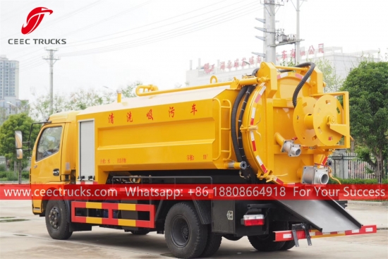 複合噴射吸引トラック 東風 (別名複合真空ジェットトラック、吸引ジェットトラック、複合下水道清掃トラック、複合ジェット吸引車、ジェットおよび真空トラック、真空下水ジェット複合トラック、複合ジェットおよび吸引トラック)は、高圧下で下水管内を移動する噴射ノズルで詰まりを解消し、強力な真空吸引によって下水管からすべての水と泥を吸い取って下水管を清掃するように設計された車両です。このトラックは環境保護のために広く使用されています。