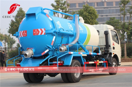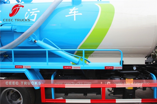 Dongfeng 8000L 汚水溜め排出装置、CHAOCHAI 120HP ディーゼルエンジン、5 シフトマニュアルギアボックス、最大 8cbm まで積載可能な高強度鋼材タンカー、WEILONG 真空ポンプが標準装備、廃棄物排出用油圧リフト装置、塗装およびロゴはリクエストに応じて異なります。