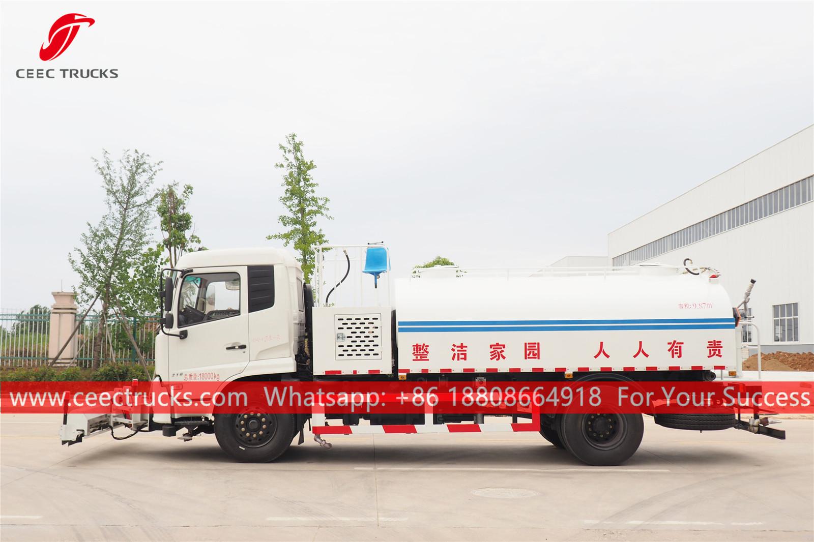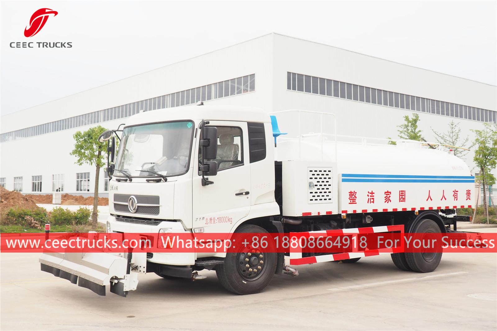 東風路面清掃トラック、東風LHD 4x2シャーシ、6速マニュアルギアボックス、カミンズ210馬力ディーゼルエンジン。全塗装およびロゴ付き要件に応じて異なります。
