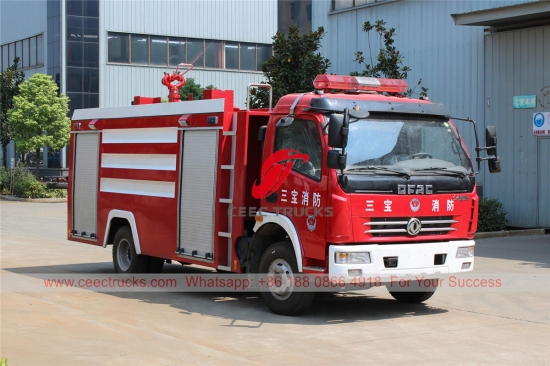 東風水泡消防車、4,000 リットルの水タンクと 1,000 リットルの泡タンク、東風 4x2 LHD/RHD シャーシ、5 速マニュアル ギアボックス、Chaochai 160HP ディーゼル エンジン、塗装およびロゴは要件によって異なります。