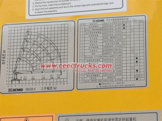 上部にはXCMG MSQS200-4 4セクションストレートアームクレーンが装備されており、最大吊り上げ重量は8トン、吊り上げトルクは20トンです。 · m. コアパラメータは次のとおりです。