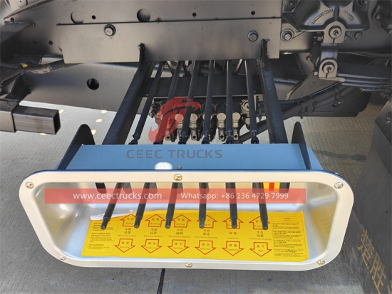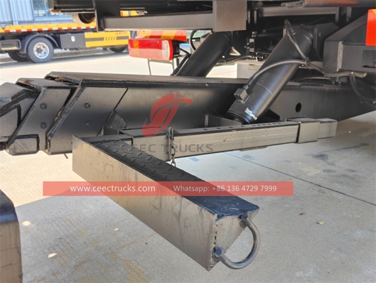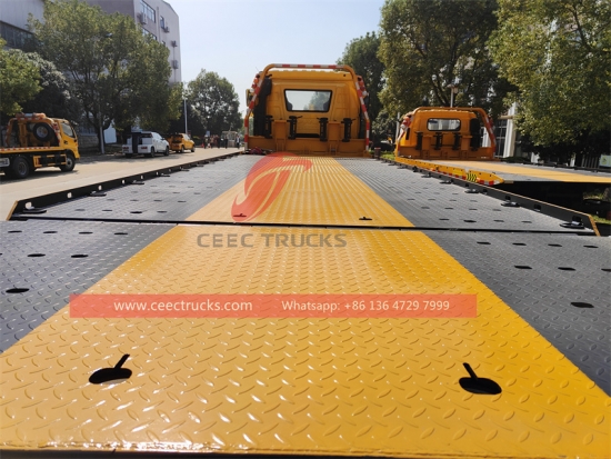 CEECトラック製造された掘削機運搬トラックは、プラットフォーム後部に油圧式ラダーが装備されているため、機械の積み込みが容易です。機械を積み込む際は、ラダーを地面に倒してプラットフォームと地面の間にスロープを作ります。積み込みが完了したら、ラダーを折りたたんで手動で固定します。