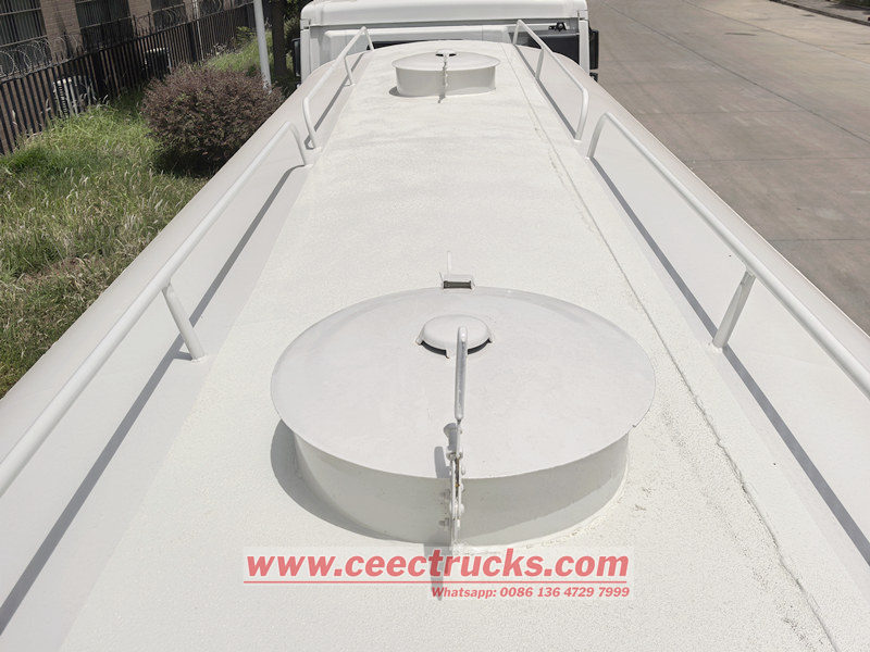 上部は容量20cbmの楕円形炭素鋼製水タンクで、WEILONG 80QZF-60 / 90Sポンプ、両側のパイプライン収納ボックスを備えています。また、車両には、前方散水ノズル、後方散水ノズル、放水砲散水監視の3つのオプション散水モードがあり、さまざまな散水操作のニーズを満たすことができます。