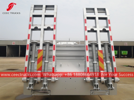 CEECトラック製造された掘削機運搬トラックは、プラットフォーム後部に油圧式ラダーが装備されているため、機械の積み込みが容易です。機械を積み込む際は、ラダーを地面に倒してプラットフォームと地面の間にスロープを作ります。積み込みが完了したら、ラダーを折りたたんで手動で固定します。