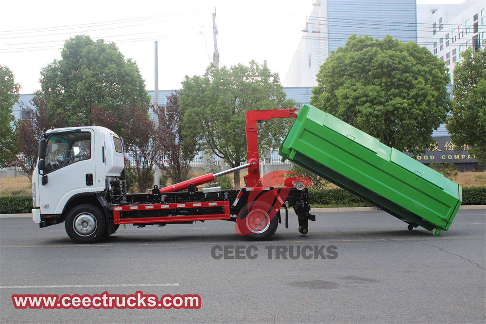 ISUZUフックリフト式ゴミ収集車は、先進的なフックアームシステムを採用し、様々なサイズのゴミ箱を迅速かつ容易に交換できるため、運用効率と柔軟性が向上します。特に、都市部、農村部、遠隔地におけるゴミ収集・運搬に適しています。また、8立方メートル(CBM)のゴミ箱を搭載し、最大8トンのゴミを積載できるため、ゴミ収集の効率が大幅に向上し、運搬頻度が減り、運用コストも削減されます。