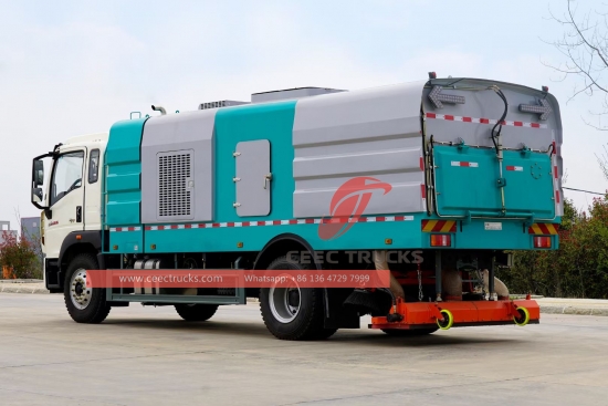 HOWO ストリートスイーパー (別名道路清掃トラック、新品道路清掃トラック、トラック搭載型清掃車、 高品質 道路清掃車、高速道路清掃車 HOWO、道路清掃車メーカー) は コミュニティ、都市、高速道路、建設現場、高架道路、橋、広場、空港、およびアスファルトコンクリートとセメントコンクリートの路面を持つドックでの日常的な清掃用に設計されています。