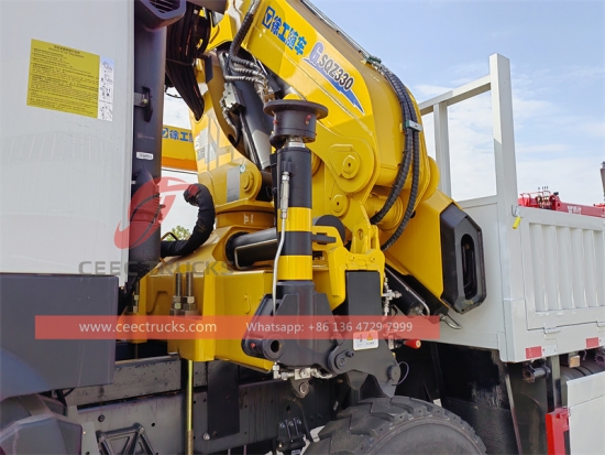 HOWO RHD 400HPナックルクレーントラック (別名HOWO大型ナックルクレーントラック、HOWO 25トンクレーントラック、HOWO 8x4ナックルクレーン(輸送トラック付き)、SINOTRUK HOWOクレーントラック、HOWO 12輪XCMGクレーントラック、トラックのシャーシに搭載されたXCMGクレーン)は、建設資材、機械、車両、その他大型またはかさばる物品の輸送に広く使用されています。フラットベッドトラックは開放的な設計のため、クレーン、フォークリフト、その他の機器を使用した貨物の積み下ろしが容易です。