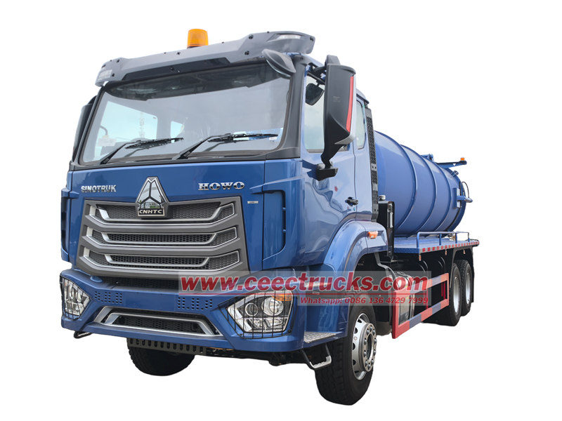 Howo 15 cbm真空セスピットエンプティアーは、HOWO NXキャビン6x4シャーシをベースに改造されており、ホイールベースは4325 + 1350mm、タイヤは合計11個で315 / 80R22.5、エアコン、USB、方向アシストを備えています。400hp WP12.400E32ディーゼルエンジン、HW19710トランスミッション、10速前進、2速後進、ZF8118ステアリングギアを備えており、強力で操作が簡単です。車両には15cbmの真空タンクが装備されており、都市下水道や産業パイプラインなどのさまざまな浚渫ニーズを満たすことができます。